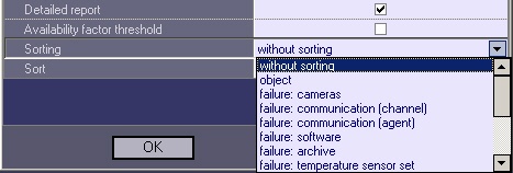 7. If the Detailed report option is enabled, the Sorting, Sort, and Availability factor threshold settings become available for editing. A detailed system-wide statistical report is generated.