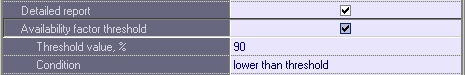 10. If the Availability factor threshold option is enabled, the Threshold value, % and Condition parameters become available for editing. These settings allow filtering objects by an additional condition: the availability factor threshold value.