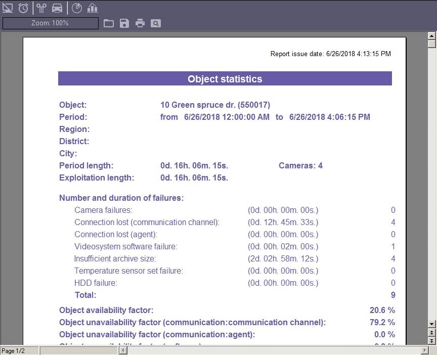 3. Include number of cameras on object. If this option is selected, calculation of unavailability factor for cameras and archives is performed based on the total number of cameras at the object.