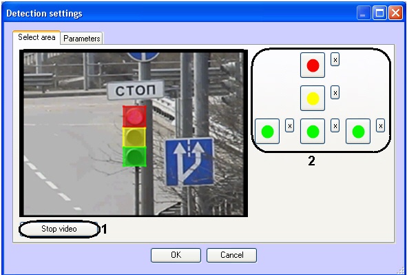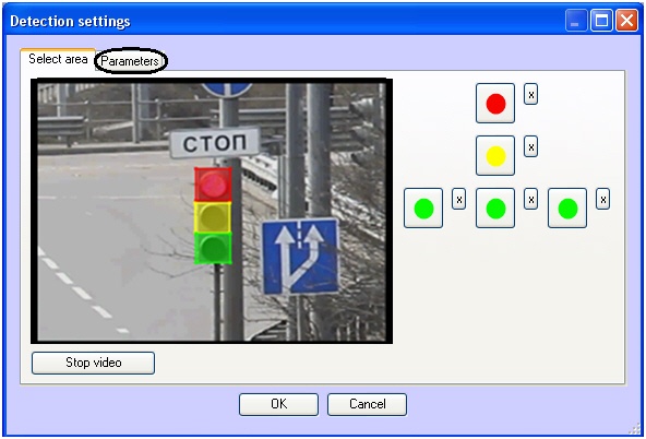 The Detector settings window will open. Specify the area of traffic light signals: