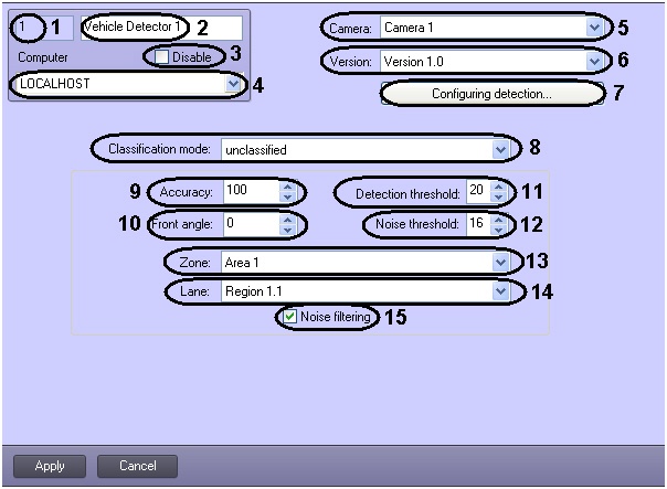 The following table describes the elements of the Vehicle Detector object settings panel.