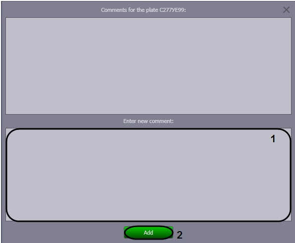 To view the comments to the event the required value should be selected in the identified vehicles protocol or in the alarms protocol. Comments will be displayed in one field (4).