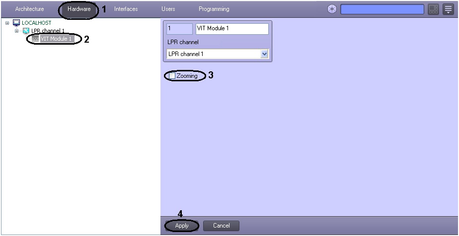 3. Set the Zooming check box to increase the plate recognizing speed on mega-pixel vedio cameras without loss of recognizing quality (3).