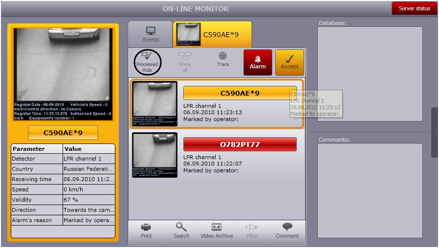 There is possibility to hide processed events in the identified vehicles protocol and alarms protocol. To realize this possibility it is necessary to click the Processed Hide button.