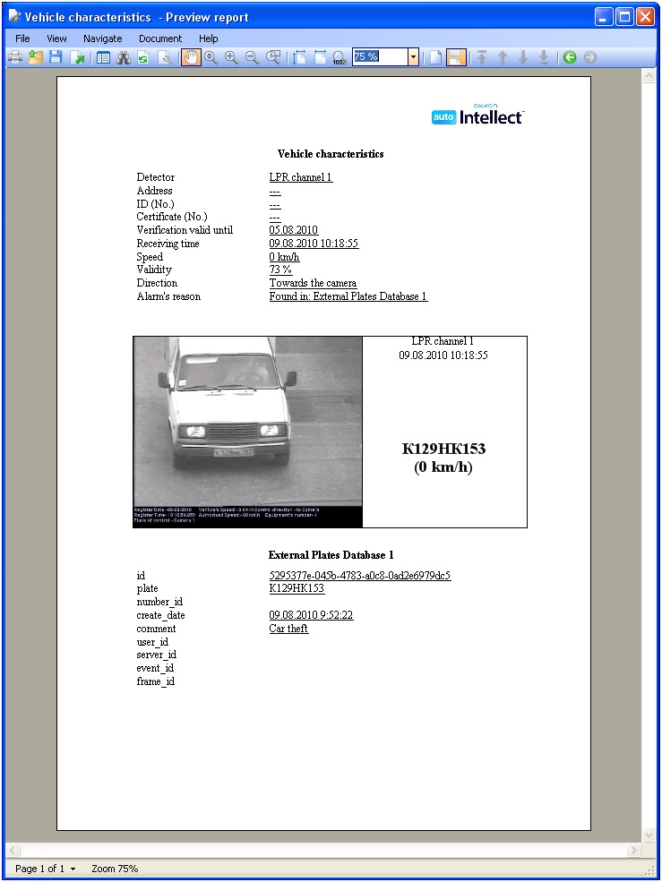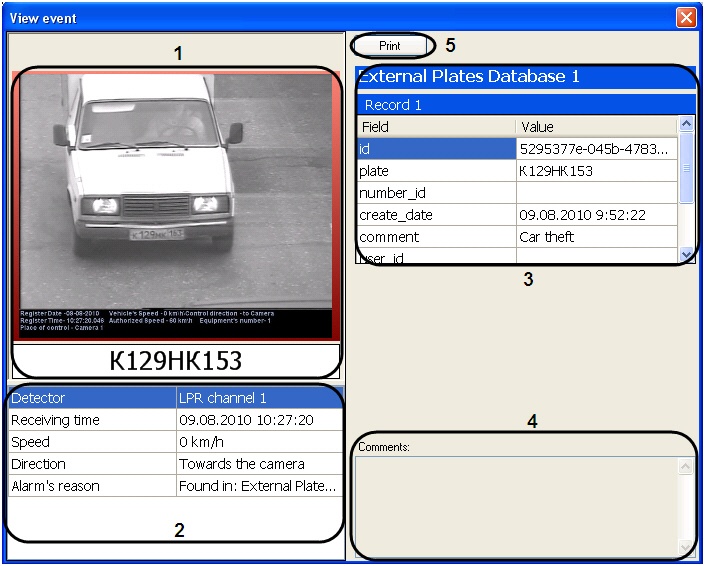 8. Data about the vehicle for the external LP database in case if the identified number has been found there (3);