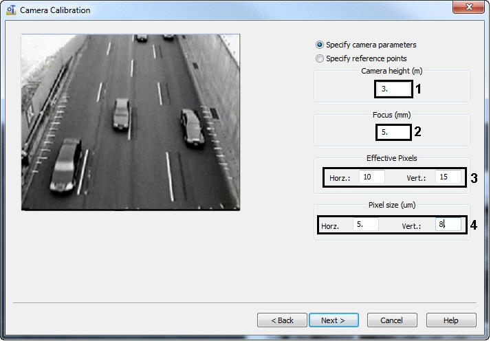 1. In the Camera height (m) field enter the height of the camera mounting in meters (1).