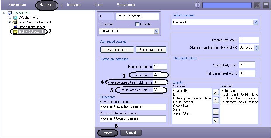 In the Traffic jam threshold field, enter the minimum road load (in percent) which is still considered to be a jam. When the road load remains lower than this value for a certain period of time, the traffic jam may be considered to have ended (if other conditions are satisfied).