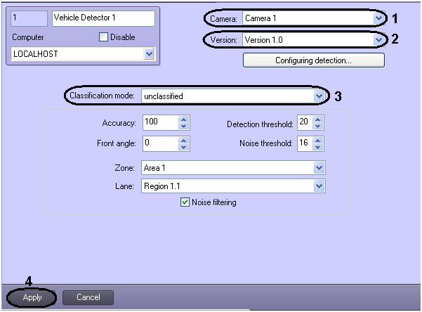 4. From the Classification mode dropdown list select the required classification mode of detected vehicles for storing the information to the Vehicle processor database (3).