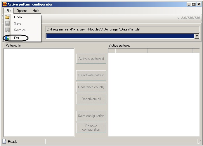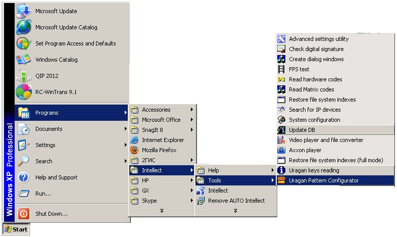 1. Start the utility from the Start menu. Click Start -> Programs -> Intellect -> Utilities -> Uragan Pattern Configurator.