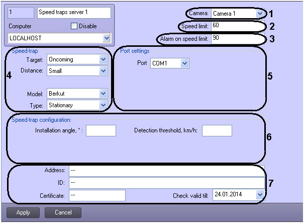 6 | Installation angle (degrees) | Text field | The angle of the speed-trap installation in relation to the horizon | Degrees | Not specified | 0 - 360 |
