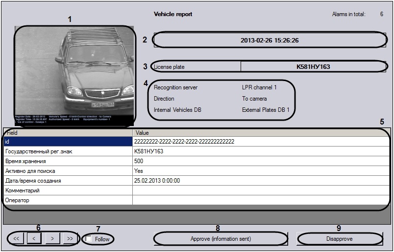 Close the orientation window. The alarm status is not changed when click this button (alarm is not processed). Alarm will disappear from the Alarm window.