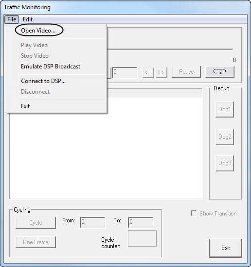 To start working with the TestAppTMD.exe utility, it is necessary to open a video file, on the template of which the Intellivision vehicle detection module will be configured.