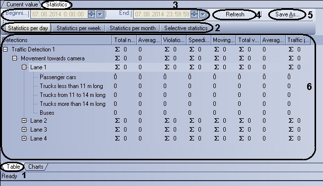 3 | Set of elements for entering the beginning and end dates and times of the traffic statistics period |