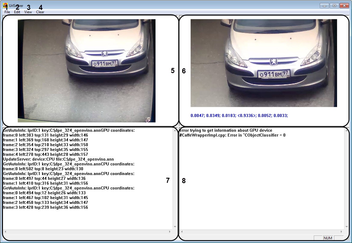 6 | The preview area of a frame prepared for recognition | In this area, the frame prepared for recognition and information on the results of recognition of this frame are displayed. |