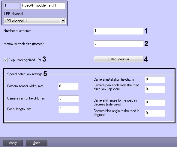 1 | Number of streams field | Enter the value in the text field | Sets the number of streams that the RoadAR SDK will use in parallel computations. A value of 0 disables the calculating process paralleling for the license plate recognition. | 0 | >=0 |