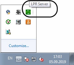 The launch of the ULPR server debug window is carried out from the notification area on the Windows taskbar. To launch the Debug window, it is necessary to click twice on the sign with the left-mouse
