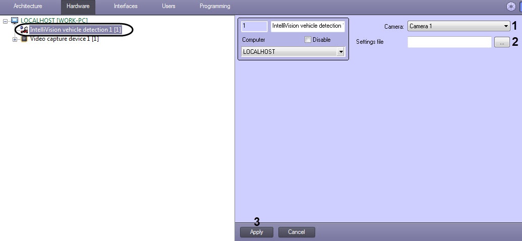 - Go to the Intellivision vehicle detection object setup panel which is created on the base of the Computer object on the Hardware tab of the System settings dialog box.