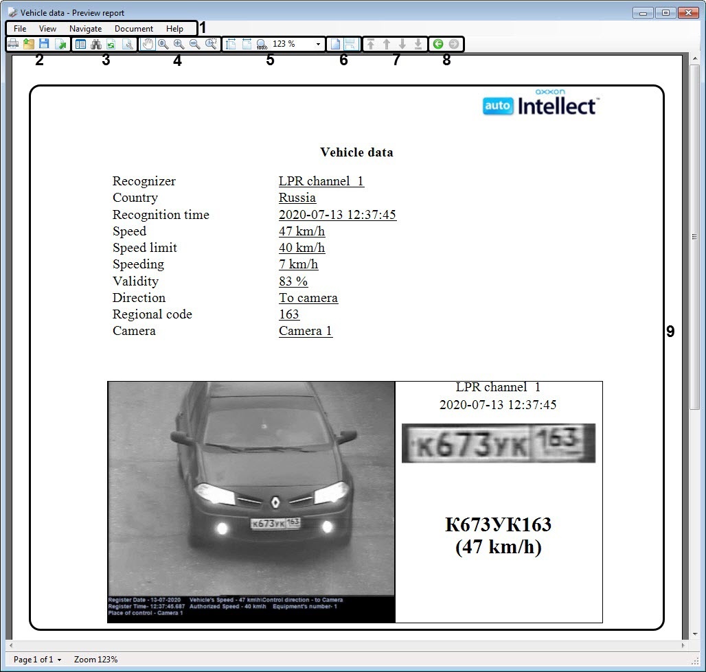 6 | Selecting the mode of displaying the report (page-by-page, nonstop page-by-page). |