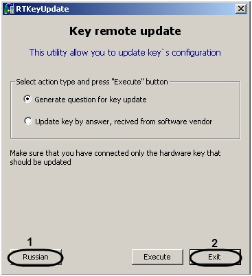 To close the RTKeyUpdate.exe utility click Exit (2).