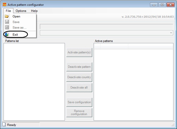 After starting the PatCfgr.exe utility, the Active pattern configurator window will open.