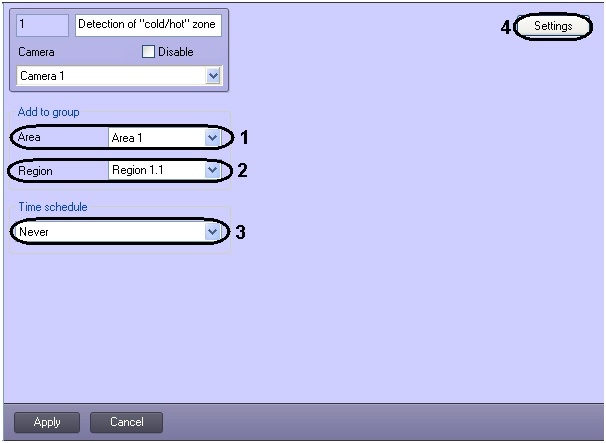 From the Time schedule drop-down list select the corresponding time schedule during which the detection will work (3).
