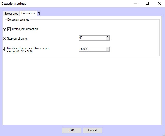 7. In the Number of processed frames per second (0.016-100) field (4), specify the number of frames the detection tool will process per second. The higher the value, the more accurate the detection tool operates. but the load on the CPU is higher as well. The default value is 25 frames.