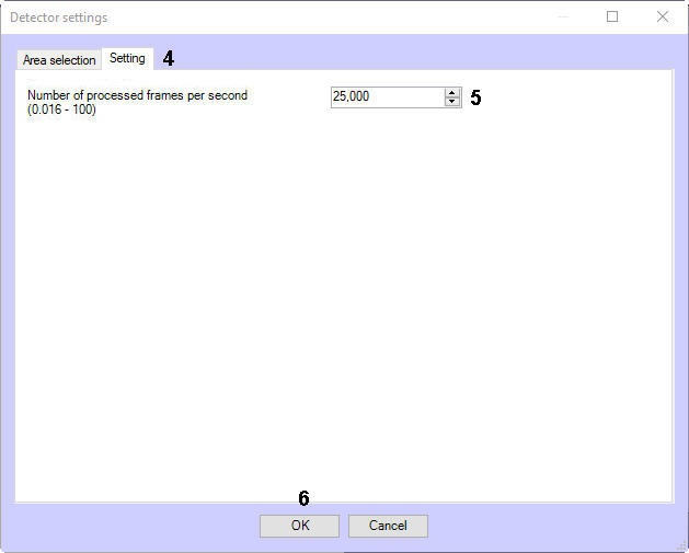 - In the Number of processed frames per second (0.016-100) field (5), set the number of frames per second that will be processed by the detection tool.