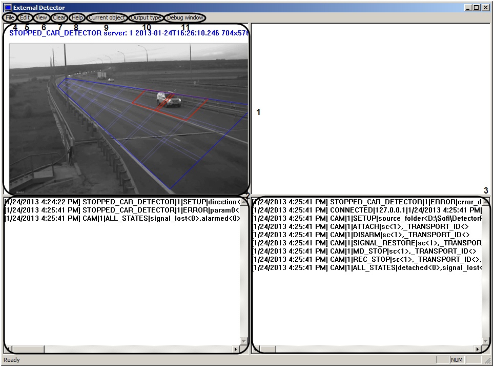 2 | Area of Events viewing from detectors | Events from detectors registered in the system are displayed in this area. |