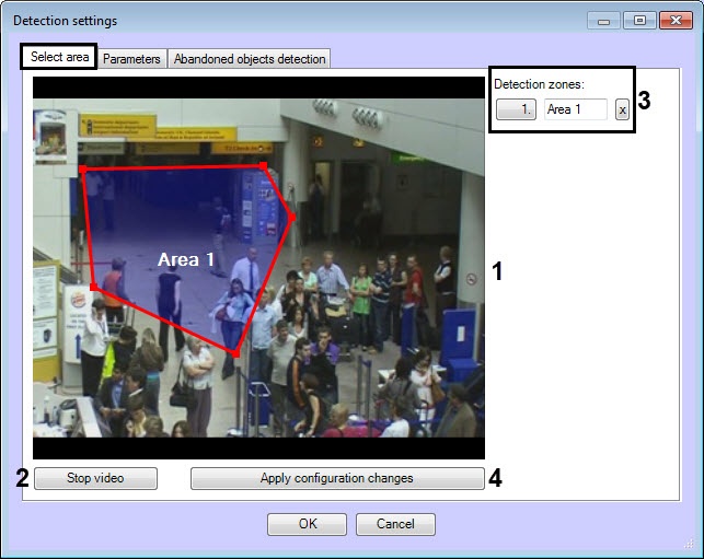 - Set one or more zones in which the abandoned objects will be detected (1).