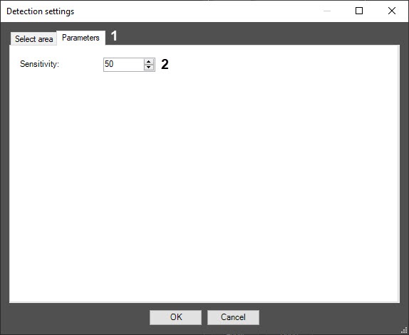 - In the Sensitivity field (2), enter the sensitivity value parameter using up-down buttons. The optimal value is selected experimentally by testing the detector for event generation in required conditions. The value range is from 0 to 100. The more sensitivity, the more possibility of false event generation. The less sensitivity, the more possibility of losing the event.