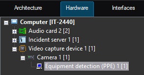 The Equipment detection (PPE) module is configured on the settings panel of the Equipment detection (PPE) object created on the basis of the Camera object on the Hardware tab of the System settings window.