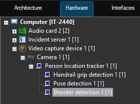 The Shooter detection object is created on the basis of the Person location tracker object on the Hardware tab of the System settings dialog window.