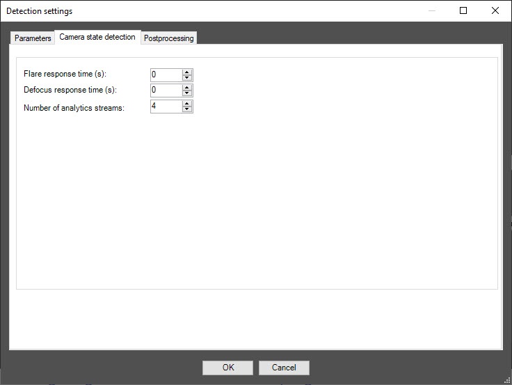 Configuration of the VI detection of camera state module includes general settings and configuration settings: configuration parameters and detector characteristics.