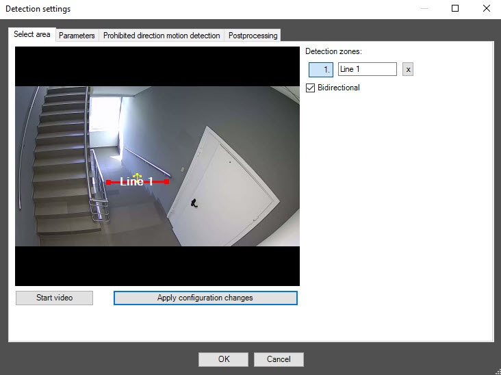 button to the right of its name. - Set the Bidirectional checkbox for the detector to generate an event when a line is crossed in both directions.