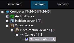 Configuration of the Neurocounter module includes: configuring the detector and selecting the area of interest. You can configure the Neurocounter module on the settings panel of the Neurocounter object created on the basis of the Camera object on the Hardware tab of the System settings dialog window.