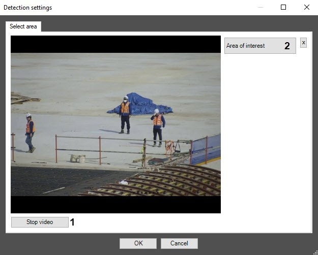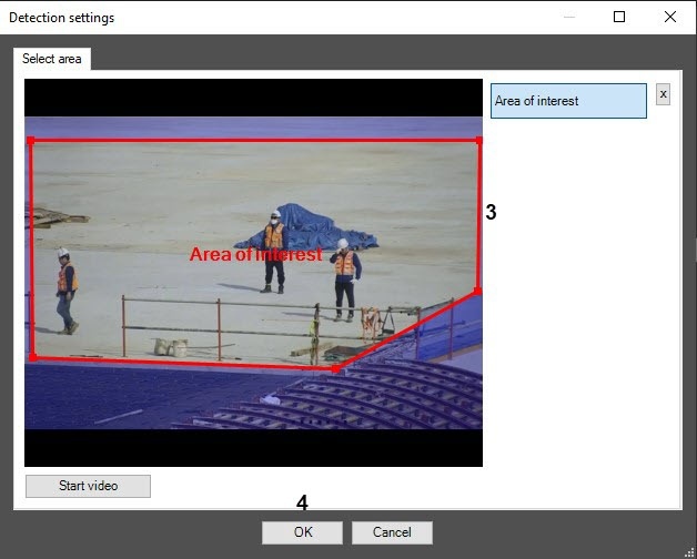 Click the Area of interest button (2) and specify the area in which the Person location tracker will operate (3). The specified area is highlighted with a red frame.