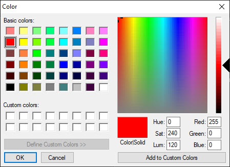In the Alarm border color field (4), set the color of the alarm border using the color palette. The default color is red. You can open the Color palette by double-clicking the color field. After you select the frame color, click the OK button to save the settings.