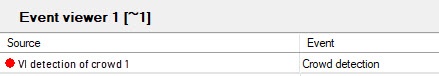 In case of an alarm in the surveillance area, the corresponding message Crowd detection from the VI detection of crowd object is received in the Event viewer interface window. When an alarm in the surveillance area stops, the Triggering end event is received. See also VI detection of crowd.
