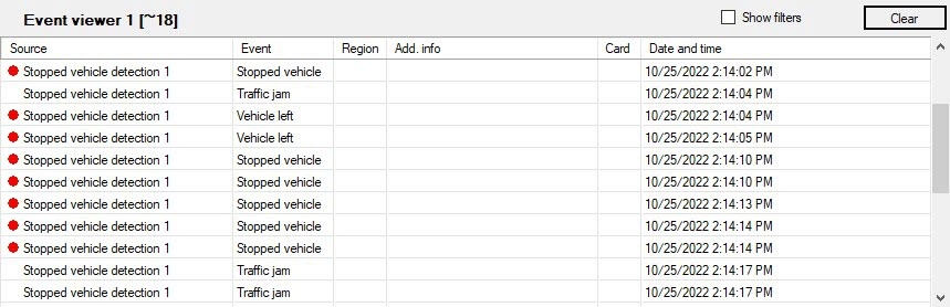 The Stopped vehicle detection module sends messages to the Event viewer when the stopped vehicle is detected in the surveillance area.