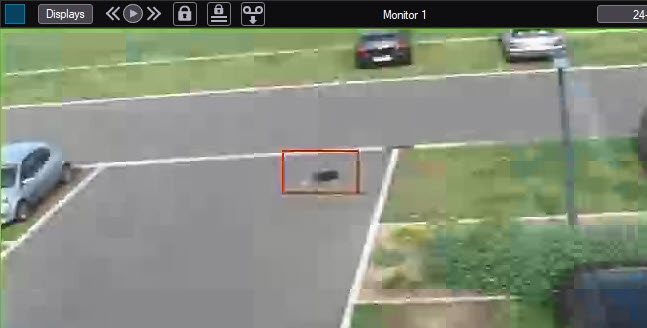 If you set the Show objects on image checkbox (see Configuring the VI abandoned objects street detection module), when the detection tool triggers, an alarm border appears in the monitor window.