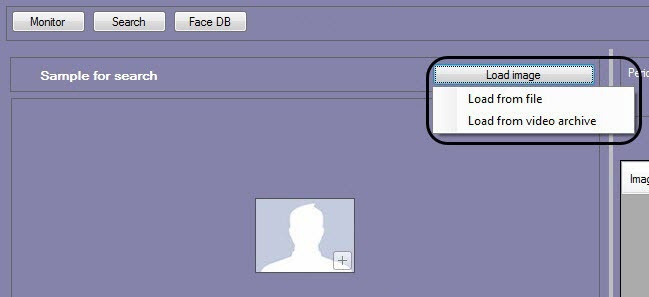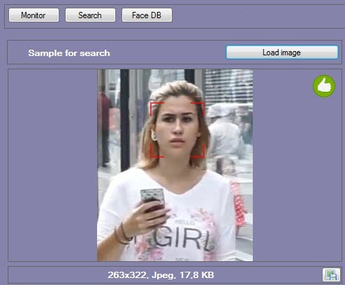As a result an image from the selected file will display in the Sample for search field on the panel of specifying search conditions.