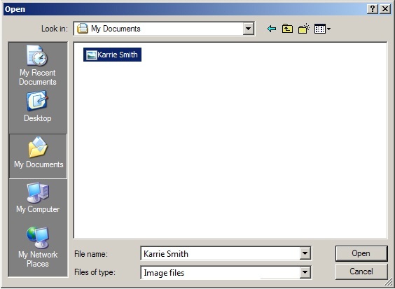 Standard window of files selection will open. Select the required file with image and click the Open button.