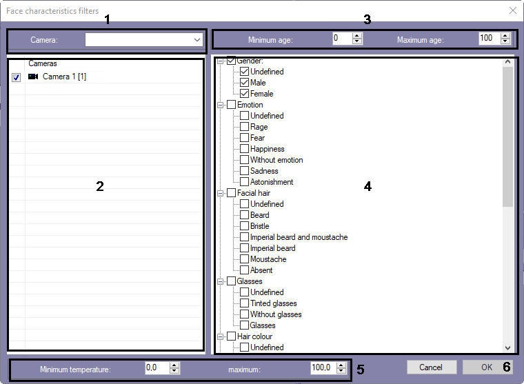 In the area (4), set the checkboxes next to the corresponding face characteristics.