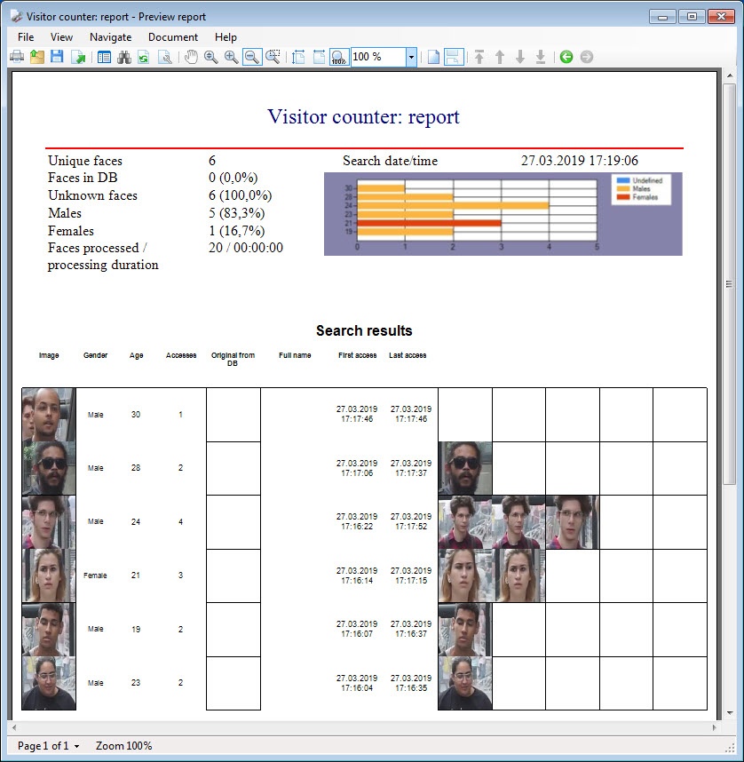 To limit the number of rows (unique faces) in the generated report, it is necessary to change the value of the CounterRowCount parameter in the face_client.run.config configuration file (for details, see XML-file parameters reference guide).