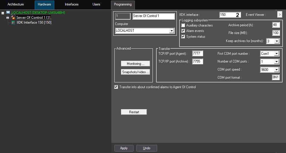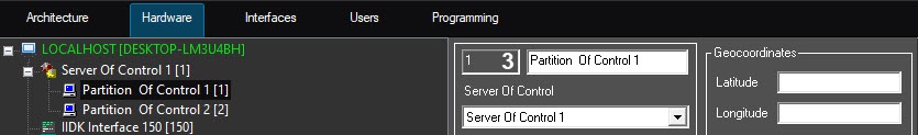 Create the required number of Partition Of Control child objects on the basis of the Server Of Control object. When you create these objects, specify the same ID (3) as in the ID field on the settings panel of the corresponding Partition Of Control object created on the basis of the Agent Of Control object.