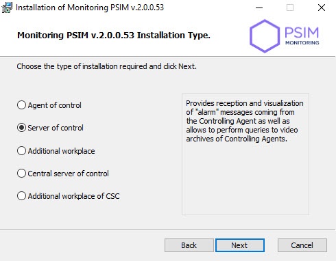 To install Monitoring PSIM in the Server of control software configuration, do the following: