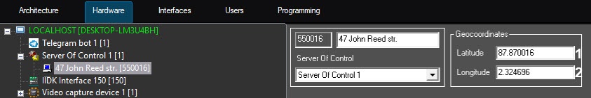 - Go to the settings panel of the Server Of Control object created on the basis of the Computer object on the Hardware tab of the System settings dialog box.
