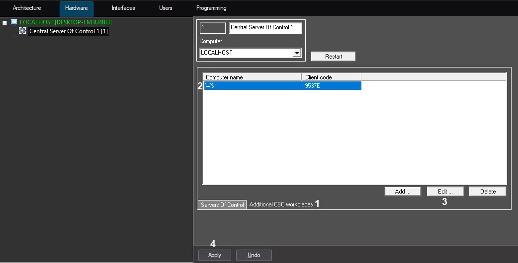 2. On the Additional CSC workplaces tab (1), select the Additional workplace of CSC which should be edited (2), and click the Edit button (3).