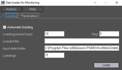 If you select the Show data loader menu item, the Data loader for Monitoring window opens.