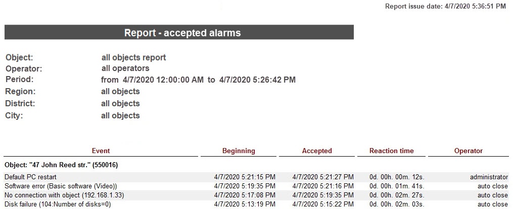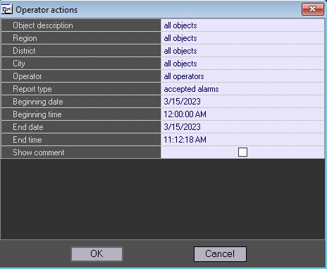 Show comment. Set this check box if it is necessary to display alarm comments in the report (see Processing alarms).